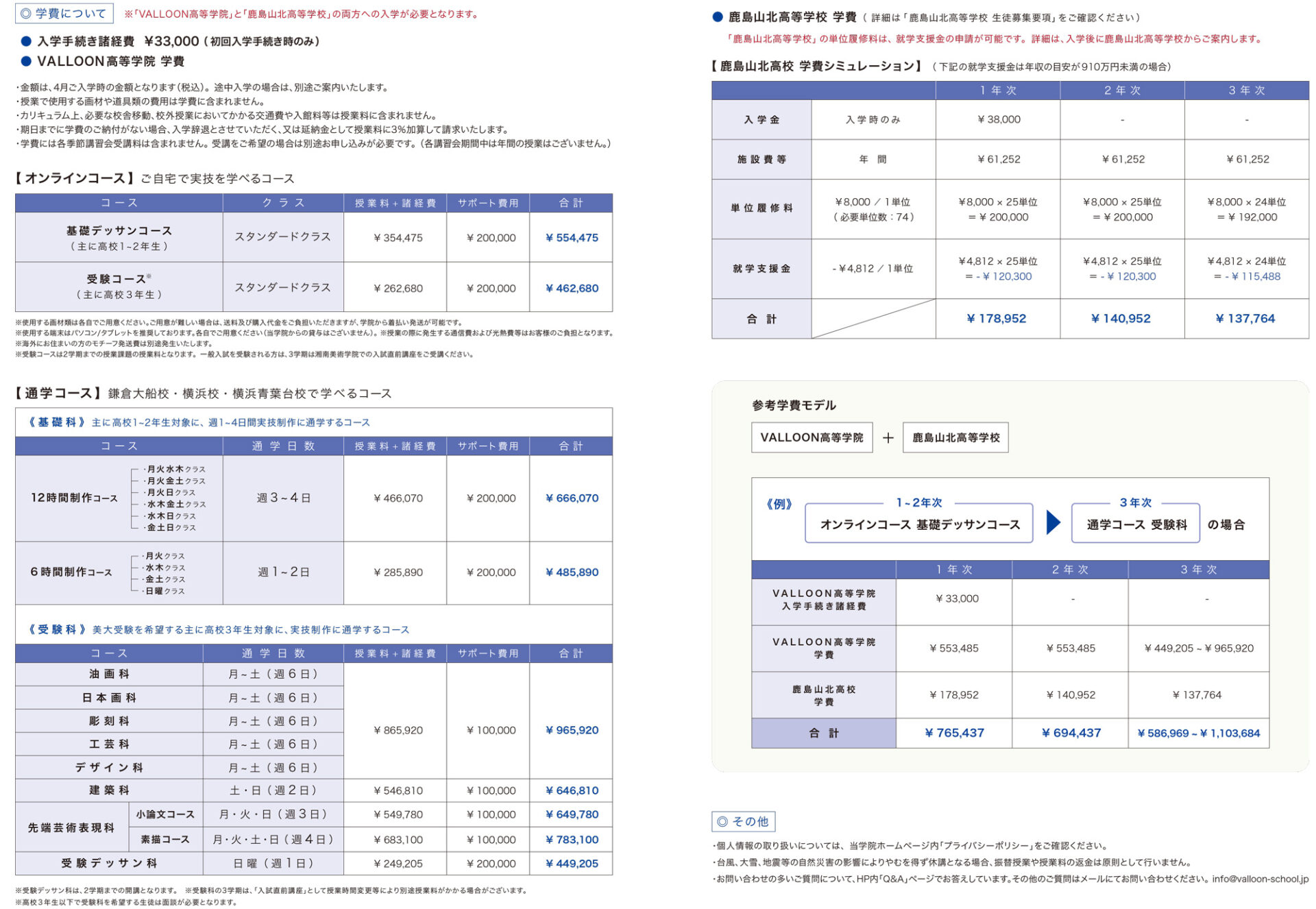 「VALLOON高等学院」「鹿島山北高等学校」それぞれに学費をご入金ください。