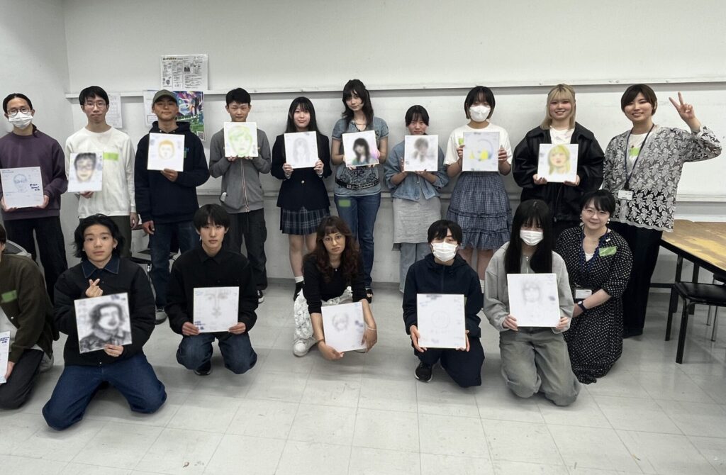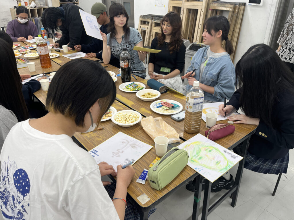 色紙に自分の似顔絵を描いて交換し、